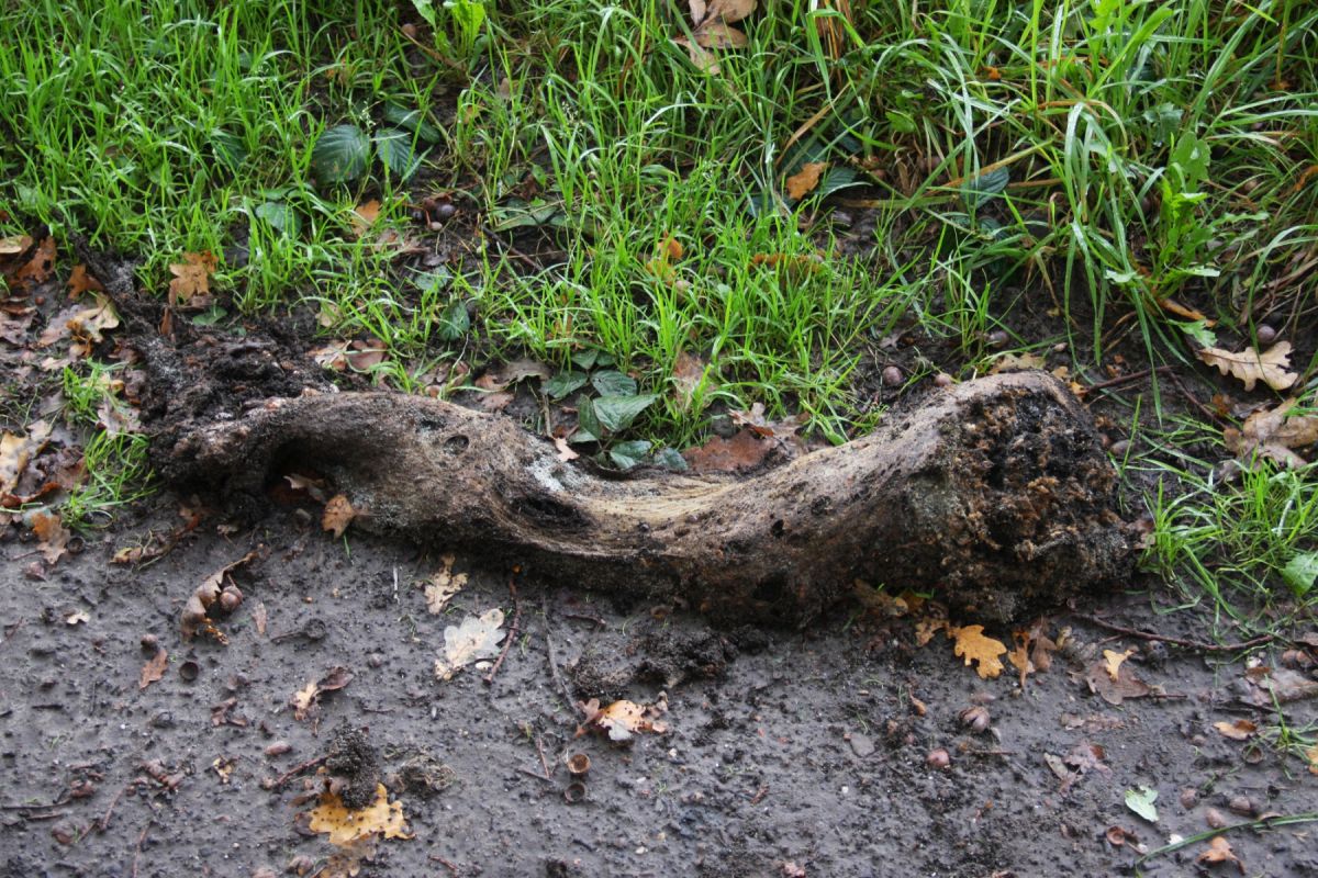 Op 17 oktober (09:12 uur) trof ik in het natuurgebied Kelsdonk (Etten-Leur) onder een eik een onbekend zacht weefsel aan (zie foto) van ongeveer een meter lengte. Erop en eronder kropen enkele pissebedden. Misschien een soort zwam, afkomstig van de eikentak erboven?