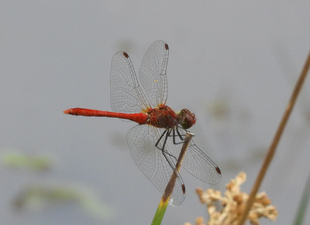 De rode libel uit de vorige vraag. Er zijn meerdere rode libellen en het vrouwtje van de bloedrode heide libel lijkt op de libel uit mijn eerste vraag. Hoe dan ook wij zijn er nog niet uit....