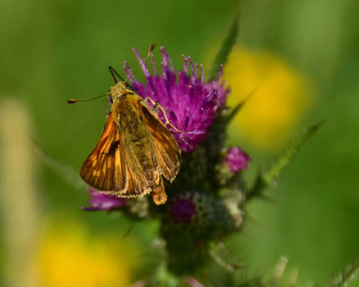 Dit vlindertje kwam voor mijn camera en ik dacht eerst aan een vuurvlindertje. Maar ik ga nu twijfelen. Ca. 2 cm. In de omgeving van Harfsen , Molenbeek op 10 juni. Wie weet het?Bedankt vast. Marianne