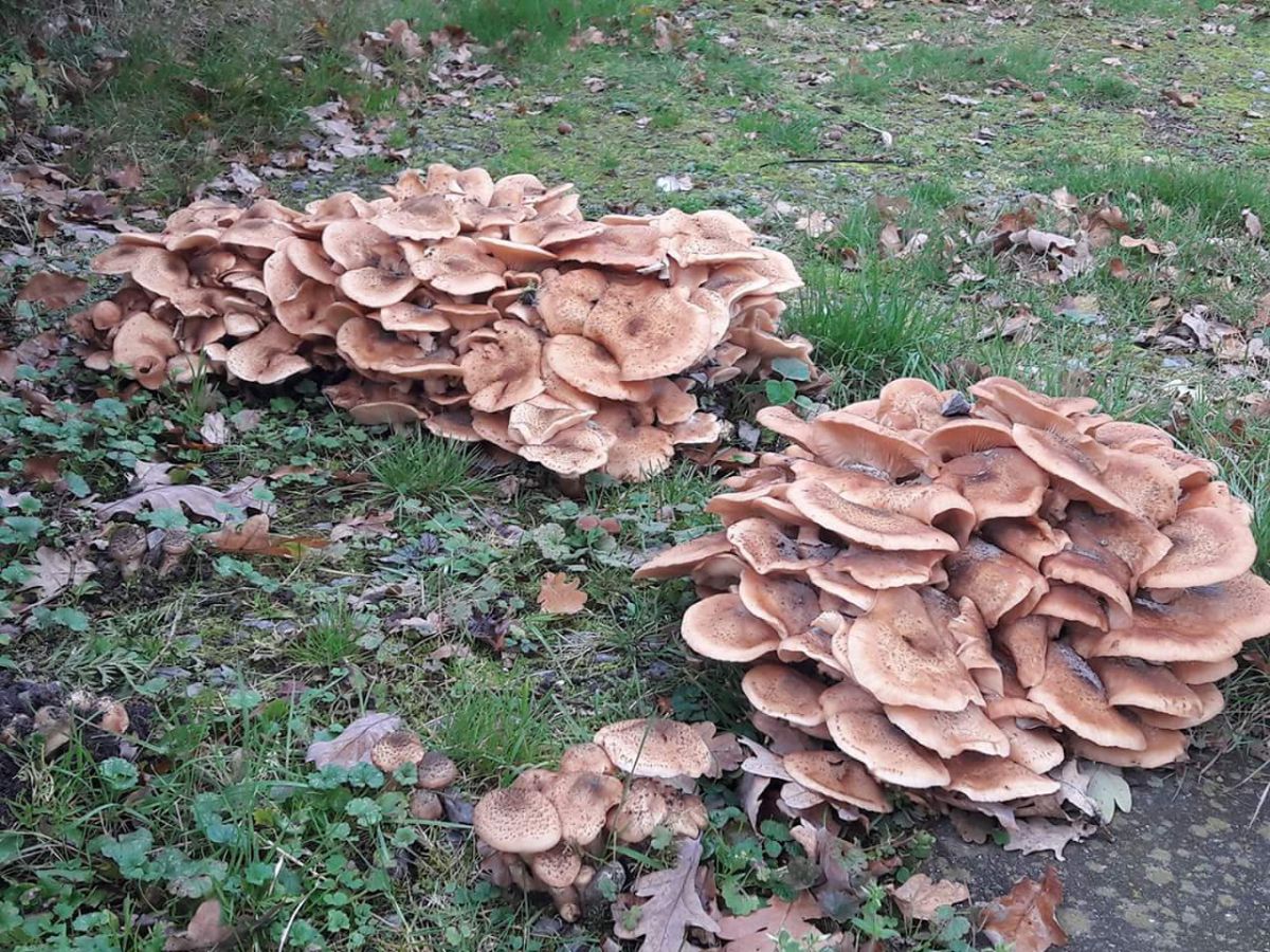 Hoe heet deze paddestoel, en dat gat in die linker is dat een foutje van moeder natuur of iets anders?? Weet er heel weinig van, maar vind paddestoelen erg facinerend.. Gezien in Rotterdam.