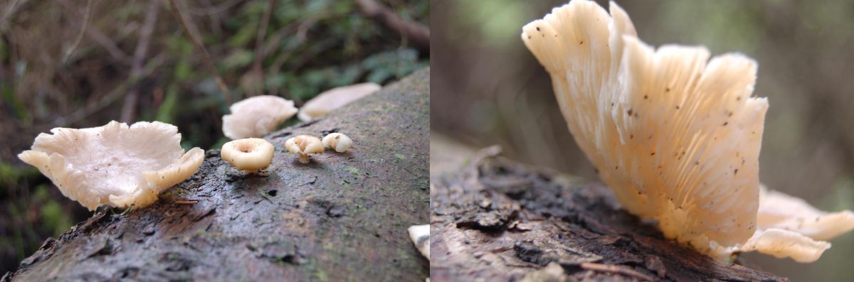 Zit op stronk beuken boom, in gemengd bos, vaal wit/creme kleurig. Zag er wat "vettig" uit.