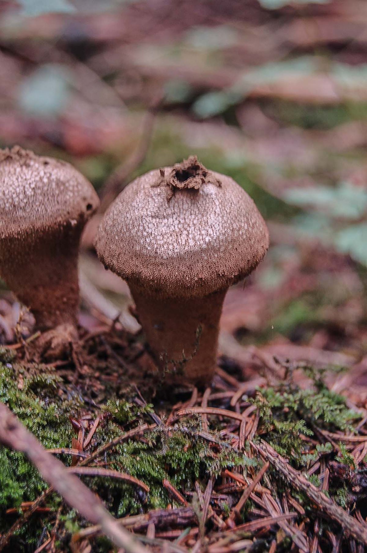 Is dit de peervormige stuifzwam of wellicht de zwartwordende stuifzwam?Plaats: Gemengd bos in de Eiffel. Ongeveer 8 a 10 cm hoog. Bij aanraking bruin/geel sporen uit de opening.