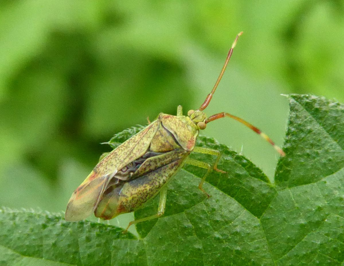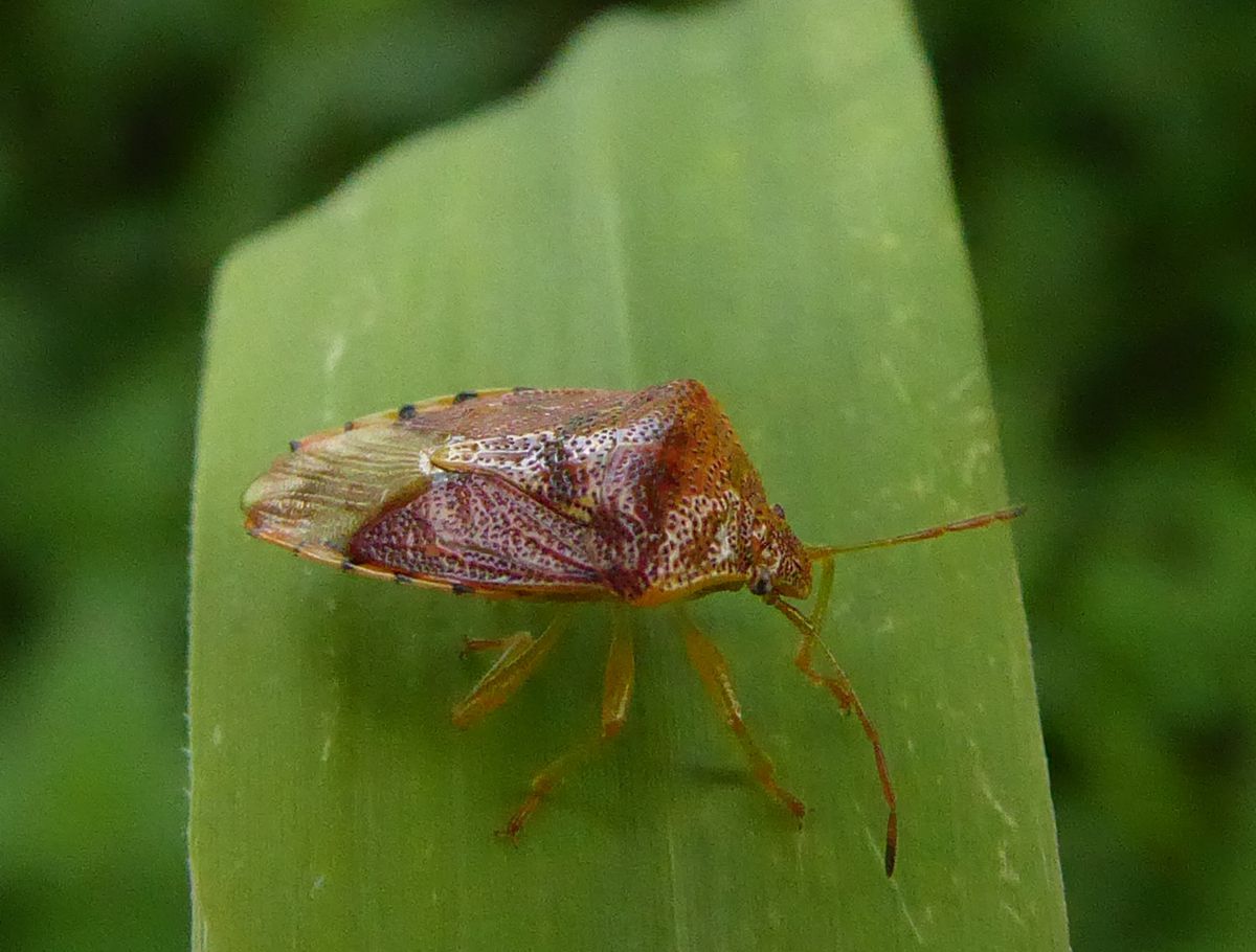 Gisteren ter oefening naar wantsen gekeken. Gebied om een plas waar veel els en ook berk voorkomt. Dit exemplaar aangetroffen op blad gele lis.Als ik het goed heb, is dit een gewone kielwants.