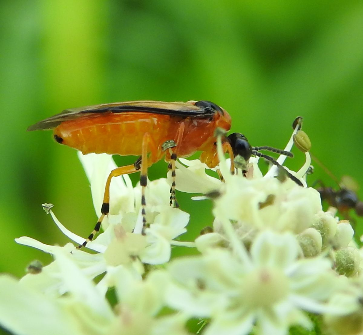 Ik heb hier een prachtig insect gefotografeerd met gestreepte pootjes, heel mooi. Maar ik heb alleen macro foto's dus kan niet zo goed zien hoe het er van boven uit ziet. Op Kampina genomen.