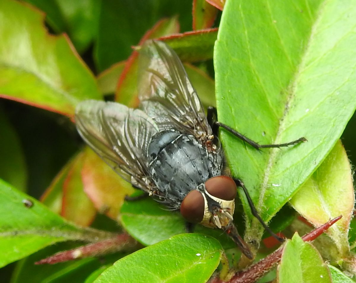 De vlieg valt op voor mij door de lichte kleur op de kop, wat zou het zijn?Hij zat gewoon bij mij thuis in de tuin.