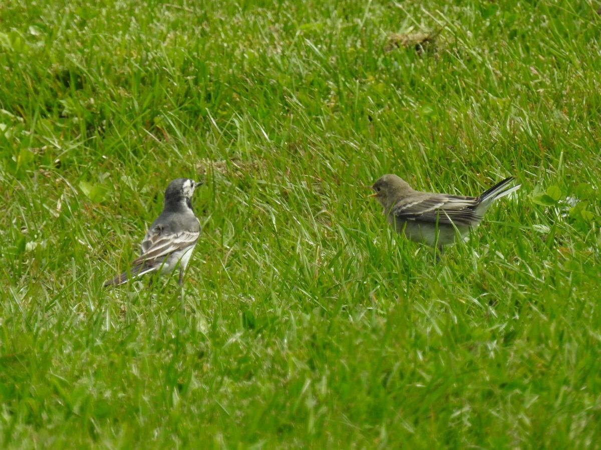 De witte kwikstaart wordt aangevallen door de vogel rechts van hem. Ik kan echter niet goed zien welke vogel dat is. Zo te zien is het nog een jonge vogel. Wie kan me helpen?De foto is genomen op 12 mei op Tiengemeten bij de speelnatuur.