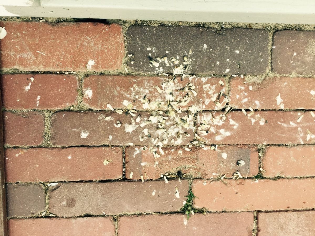 Dit dier overnacht onder mijn zonnescherm. Ik heb s nachts wel eens met een zaklantaarn geschenen, maar ik zie hem niet.