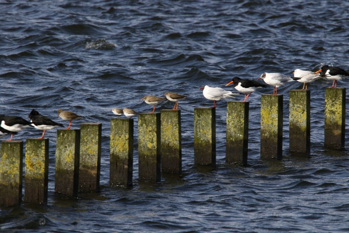 Het gaat om de twee vogeltjes die op één paal zitten tussen de tureluurs in.