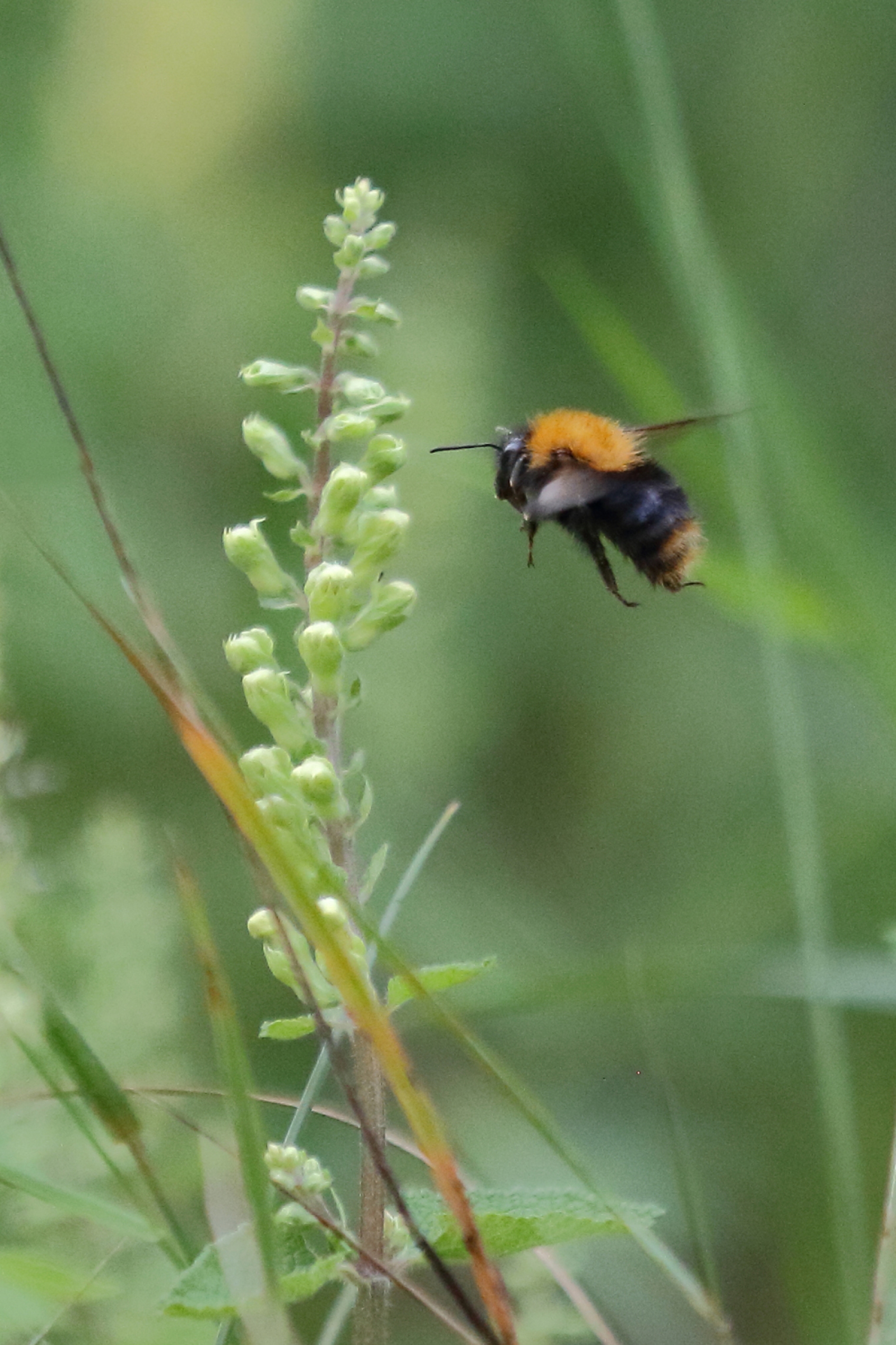 Deze hommel tekent zich heel mooi af tegen de achtergrond!