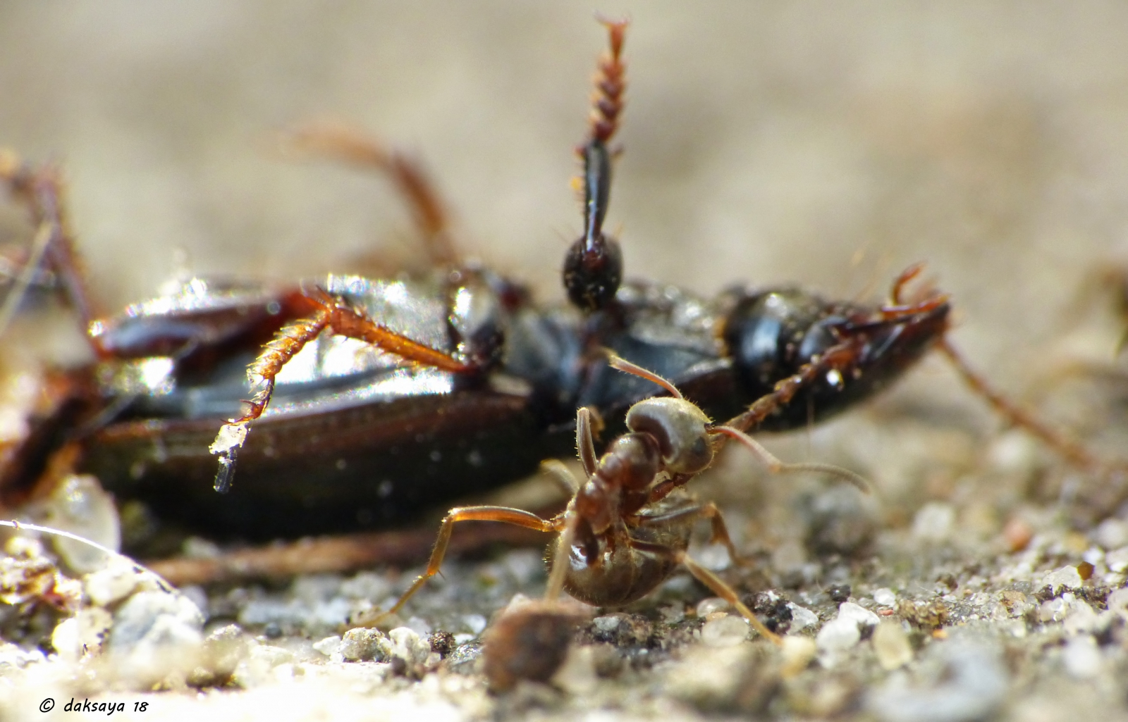 Wat zijn ze toch sterk en krachtig, zo'n kleine mier en met deze reus,