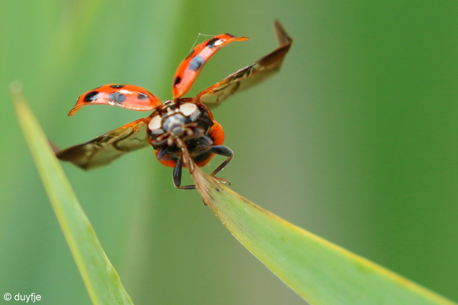JancoGrave Geplaatst op 25-05-2018 om 15:00 Lijkt mij een aziatisch lieveheersbeestje te zijn, gezien zijn halsschild, mooi moment, goede opname. Gr. Jan