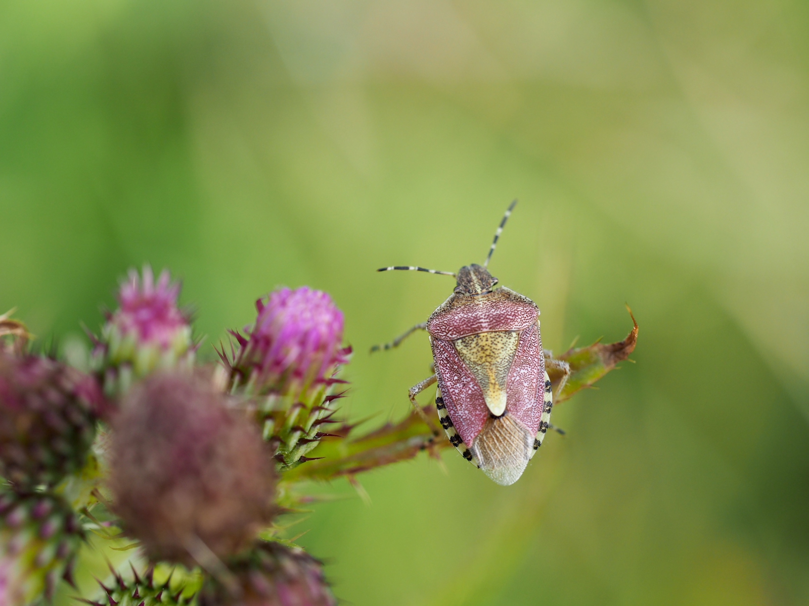 Mooie macro. Vooral ook doordat de kleuren van de distel en de wants matchen tegen een fijne vage achtergrond.