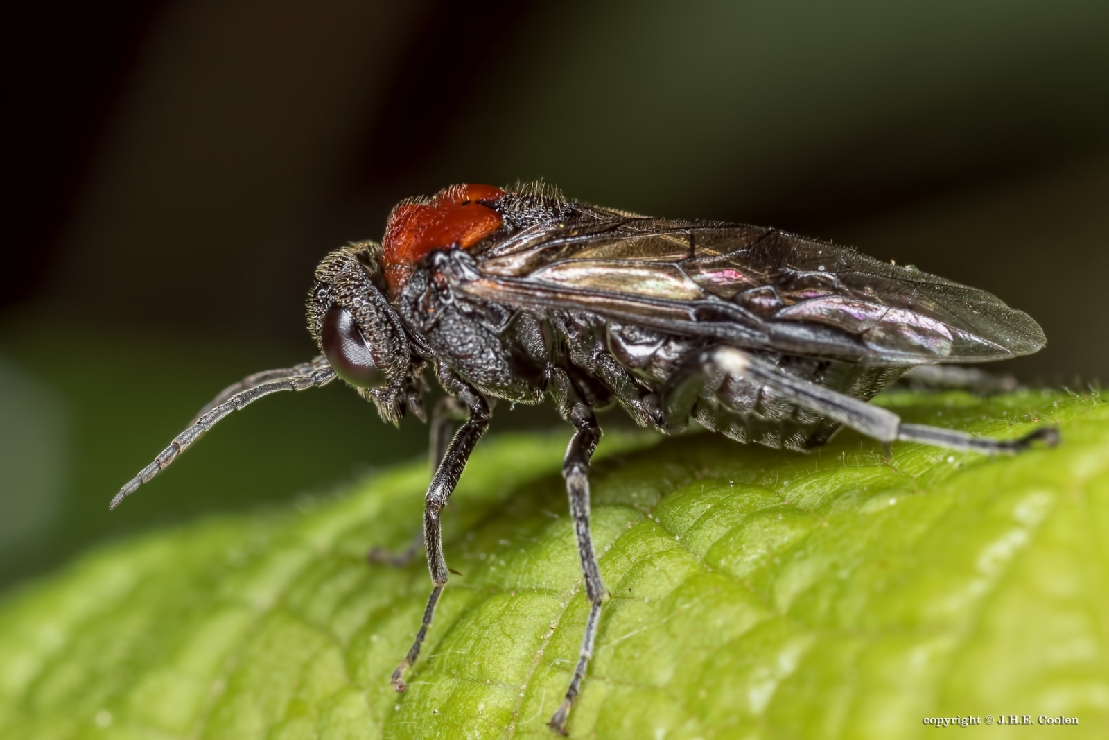 De volwassen wespen verschijnen in Mei-Juni (1e generatie) en onder gunstige omstandigheden is er een 2e generatie in Juli-Augustus. De wespen planten zich maagdelijke voort (Parthenogenese), hier komen dus geen mannetjes aan te pas. Mannetjes worden dan ook zelden waargenomen in Europa en helemaal niet in Noord Amerika. De eitjes worden gelegd in rijtjes in de hoofdnerf van elzen bladeren. De larven blijven aan de onderkant van de bladeren en eten regelmatige gaten in het bladoppervlak. Verpopping gebeurt in een cocon onder de grond. Gr. Jan