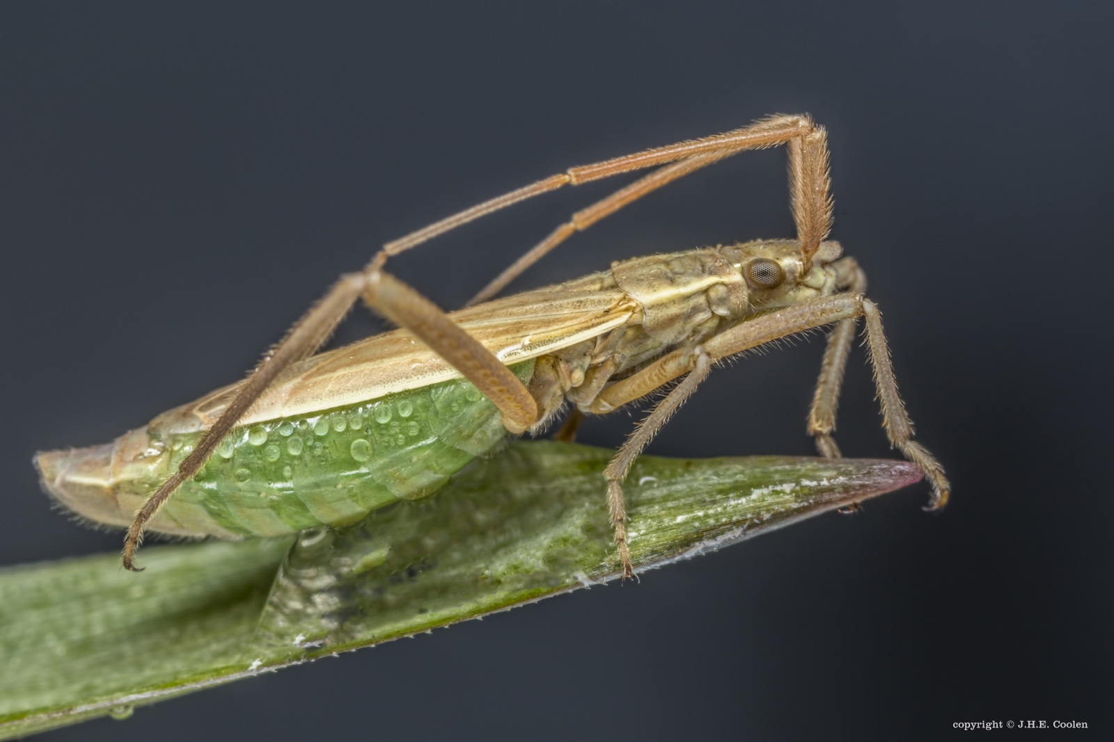 Mooi beestje, zijn buik heeft dezelfde kleur als het gras, de natuur regelt het toch maar !!