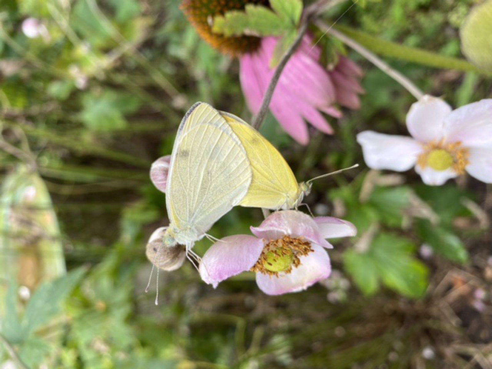 Dit zijn geen Citroenvlinders....maar Koolwitjes. Met deze foto wat moeilijk te zien, maar vermoedelijk zijn het