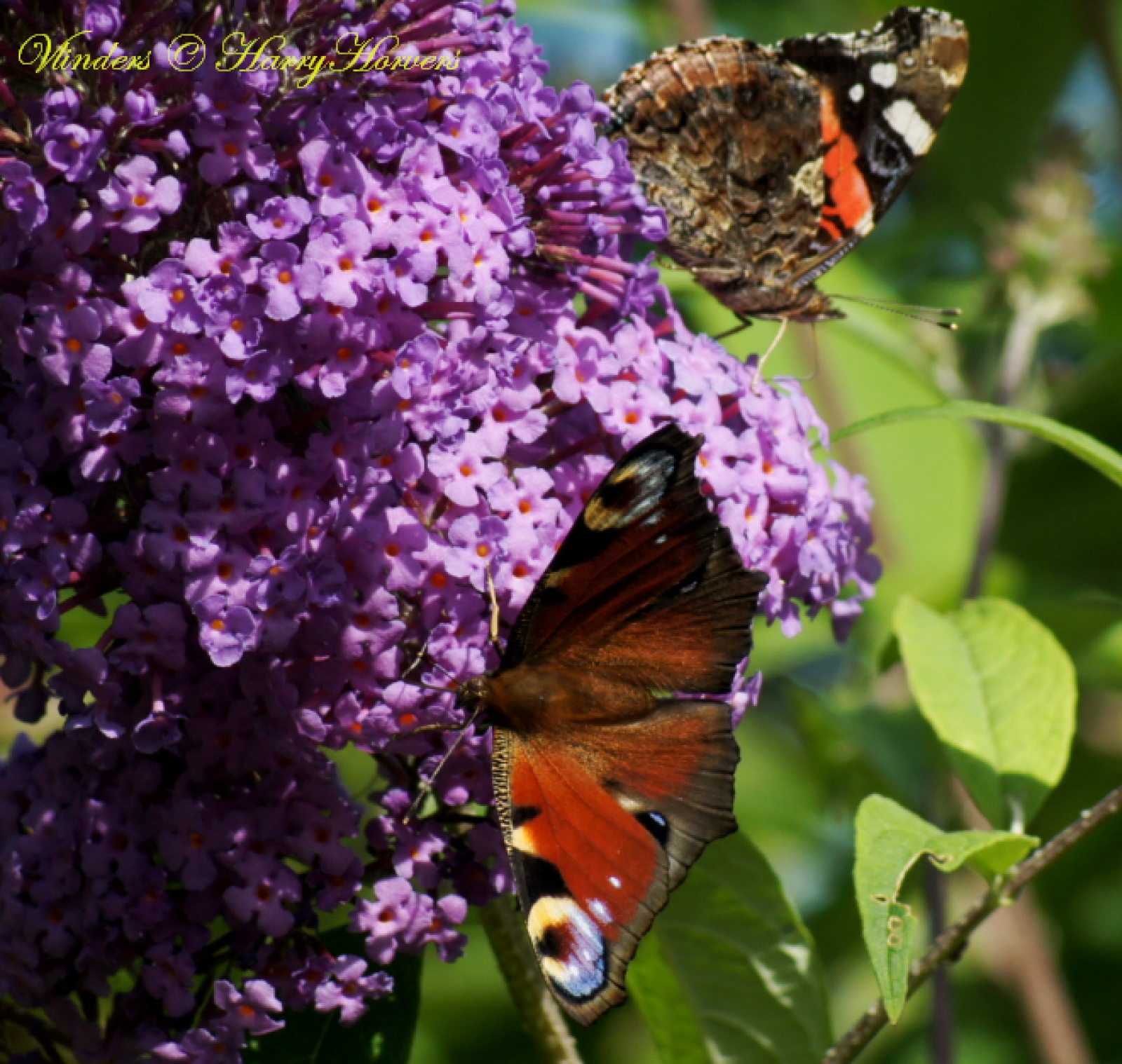 Dagpauwoog en Atalanta op Vlinderstruik