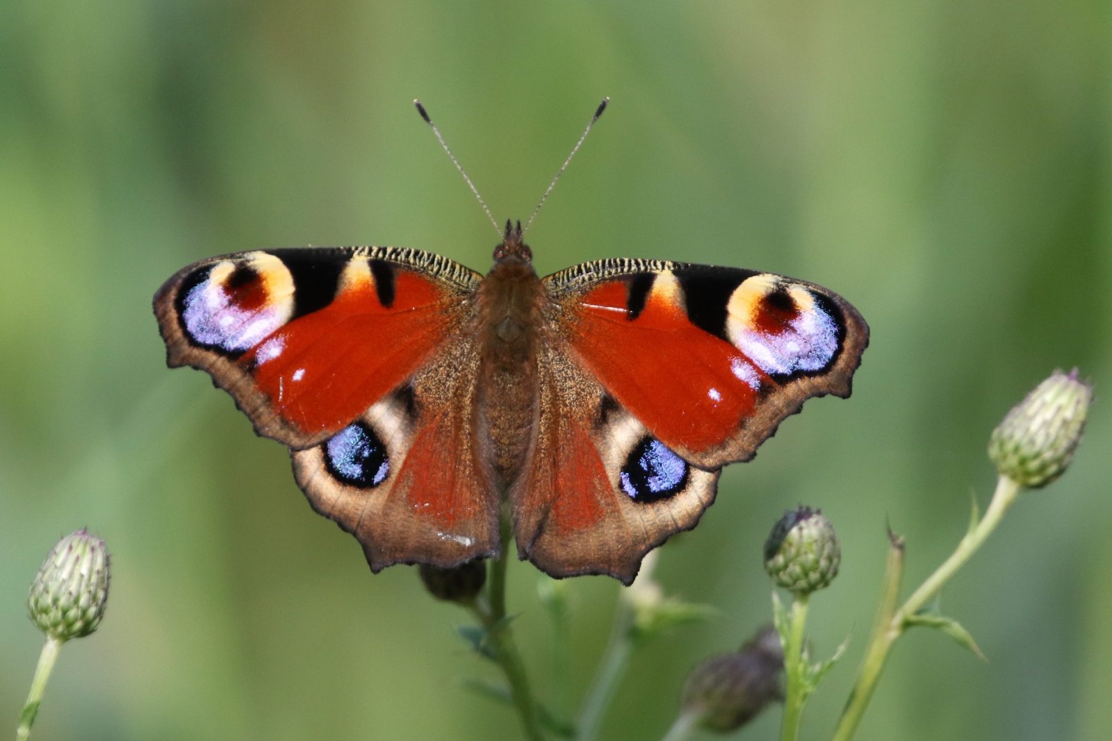 De vlinder steekt mooi af tegen de vage groene achtergrond. Fraaie foto.