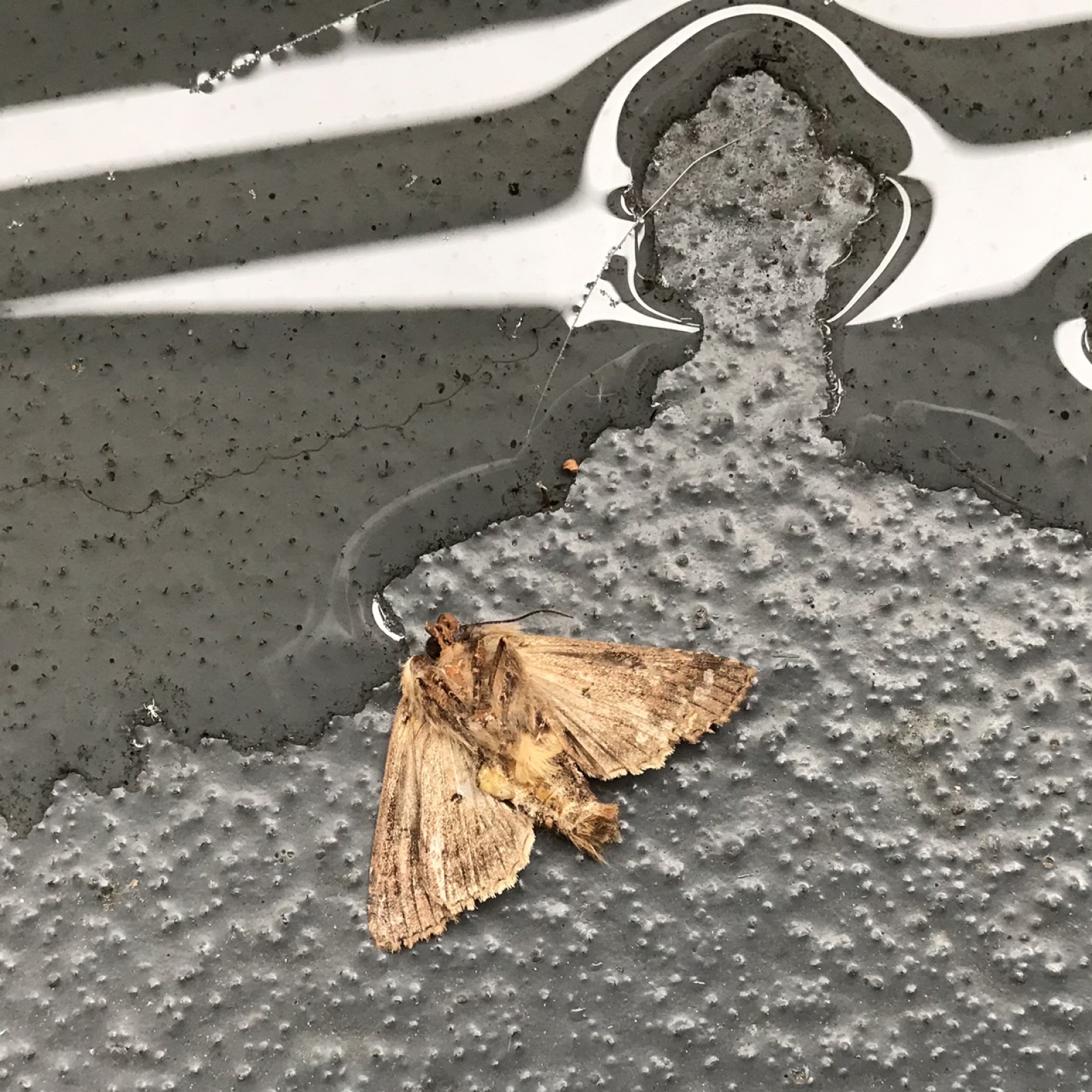 Dode nachtvlinder op de grond van balkon