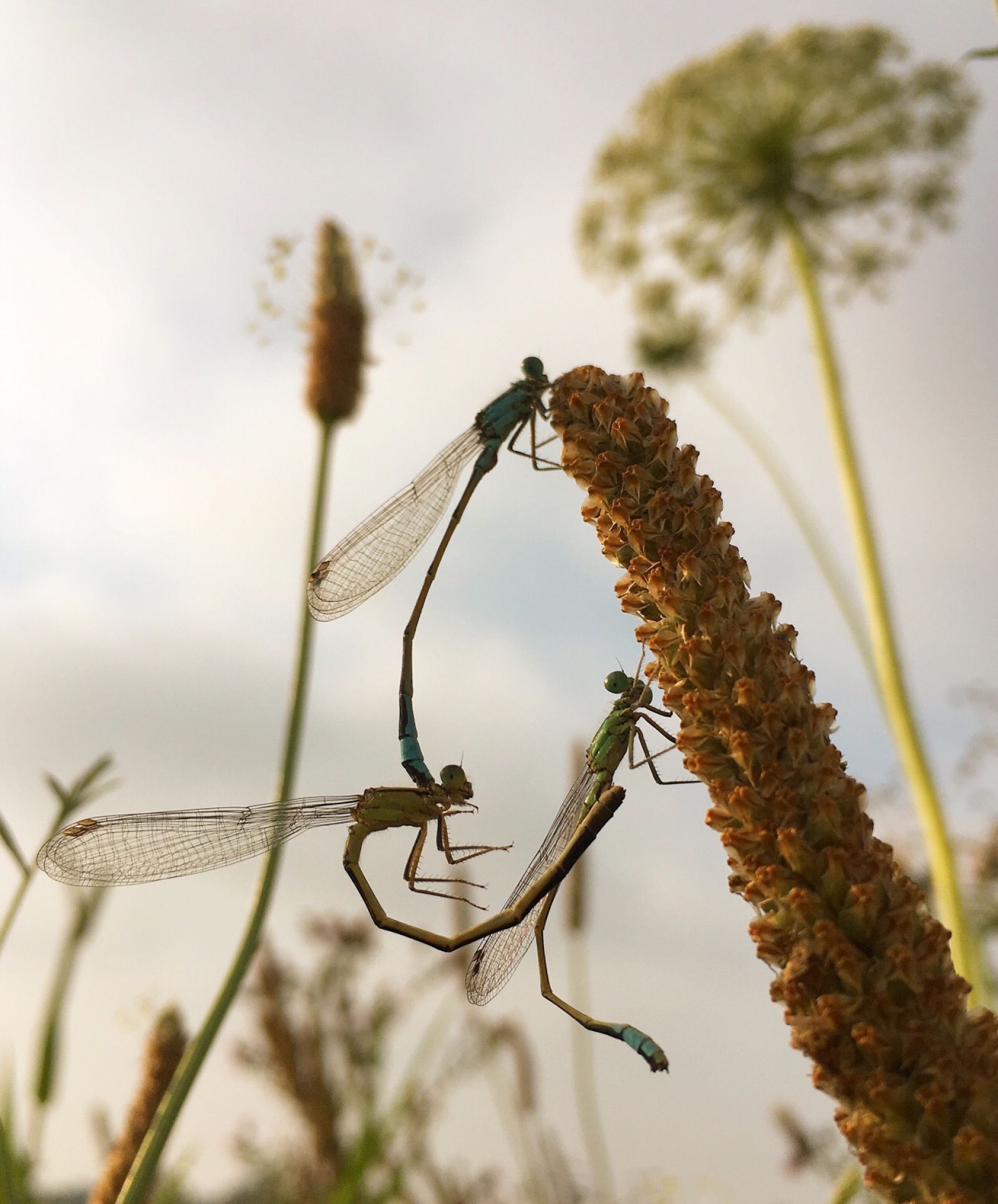 Ik had het nog nooit gezien drie libellen aan elkaar