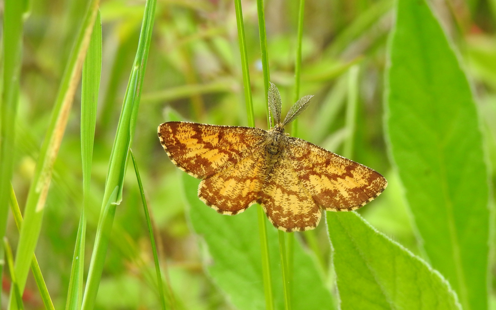 Mannetje met dubbelgeveerde antennen. Komt voor in heidegebieden, schrale graslanden en veengebieden. Algemeen op heideterrein. De verpopping vindt in de grond plaatst waar de pop overwintert. In Nederland vliegen ze meestal in twee generaties per jaar.