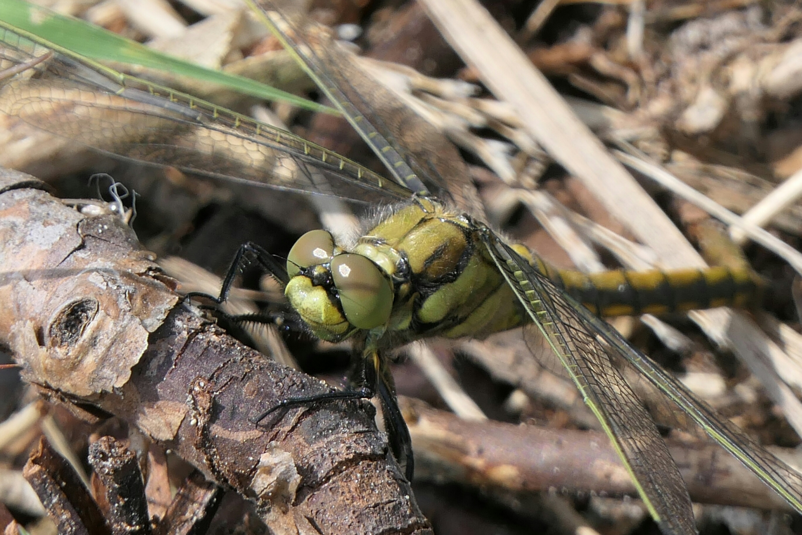 Deze gewone oever libelle ziet er erg mooi uit met zijn goene ogen.