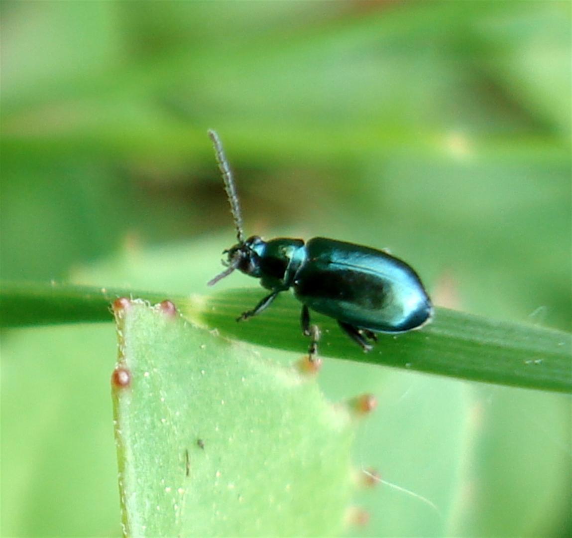 Groen Schildpadtorretje, leeft van blad van planten en bomen. 10 mm.