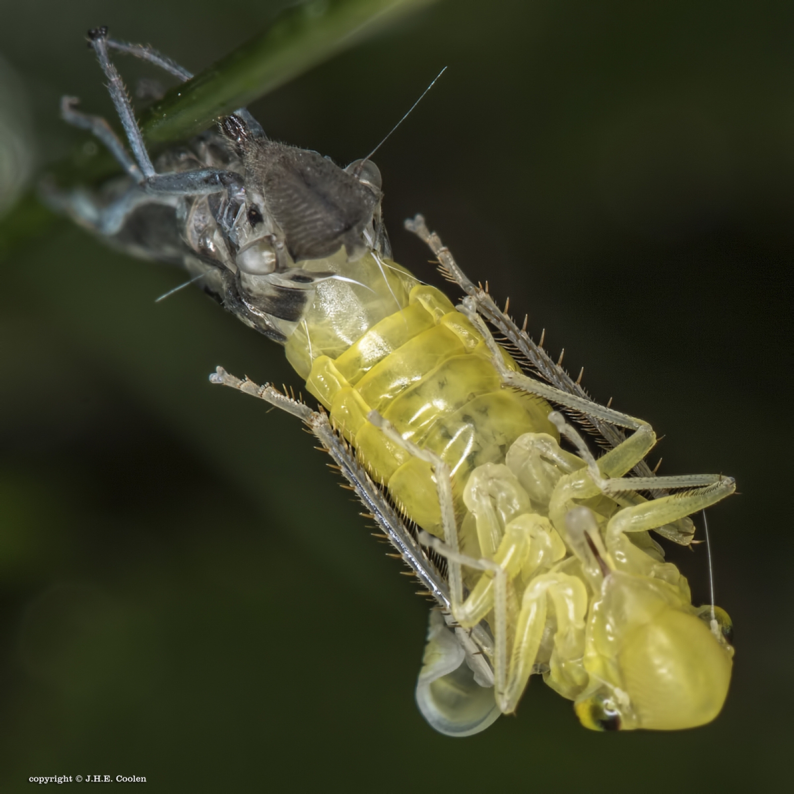 een groene rietcicade, hier nog geheel geel, maar niet voor lang. Gr. Jan