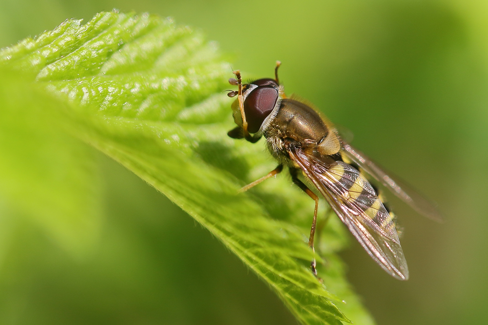 Kleine bandzweefvlieg met pootjes omhoog -ter ere van de verjaardag van onze Koningin?