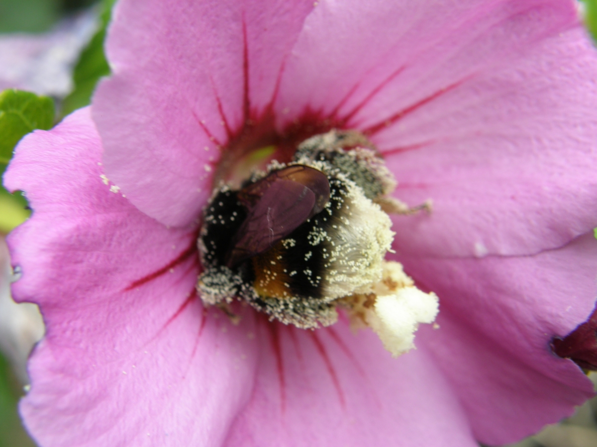 Er hangt een heel gewicht aan stuifmeel aan de poten van deze hommel