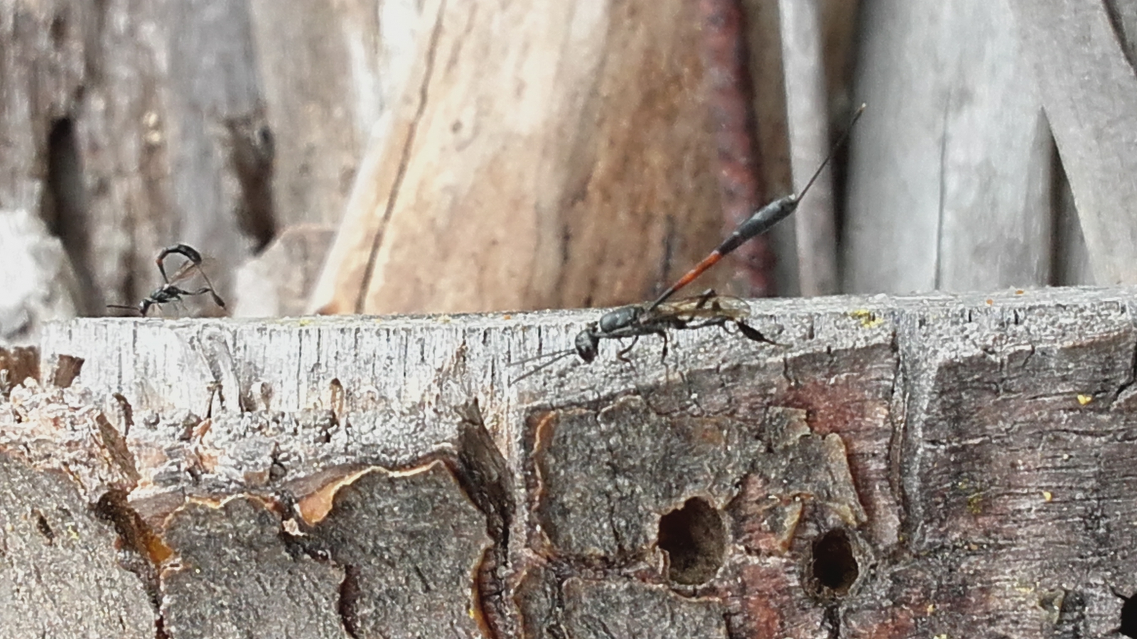 Bezoekers bij het insektenhotel in de IVN-tuin in Rheden