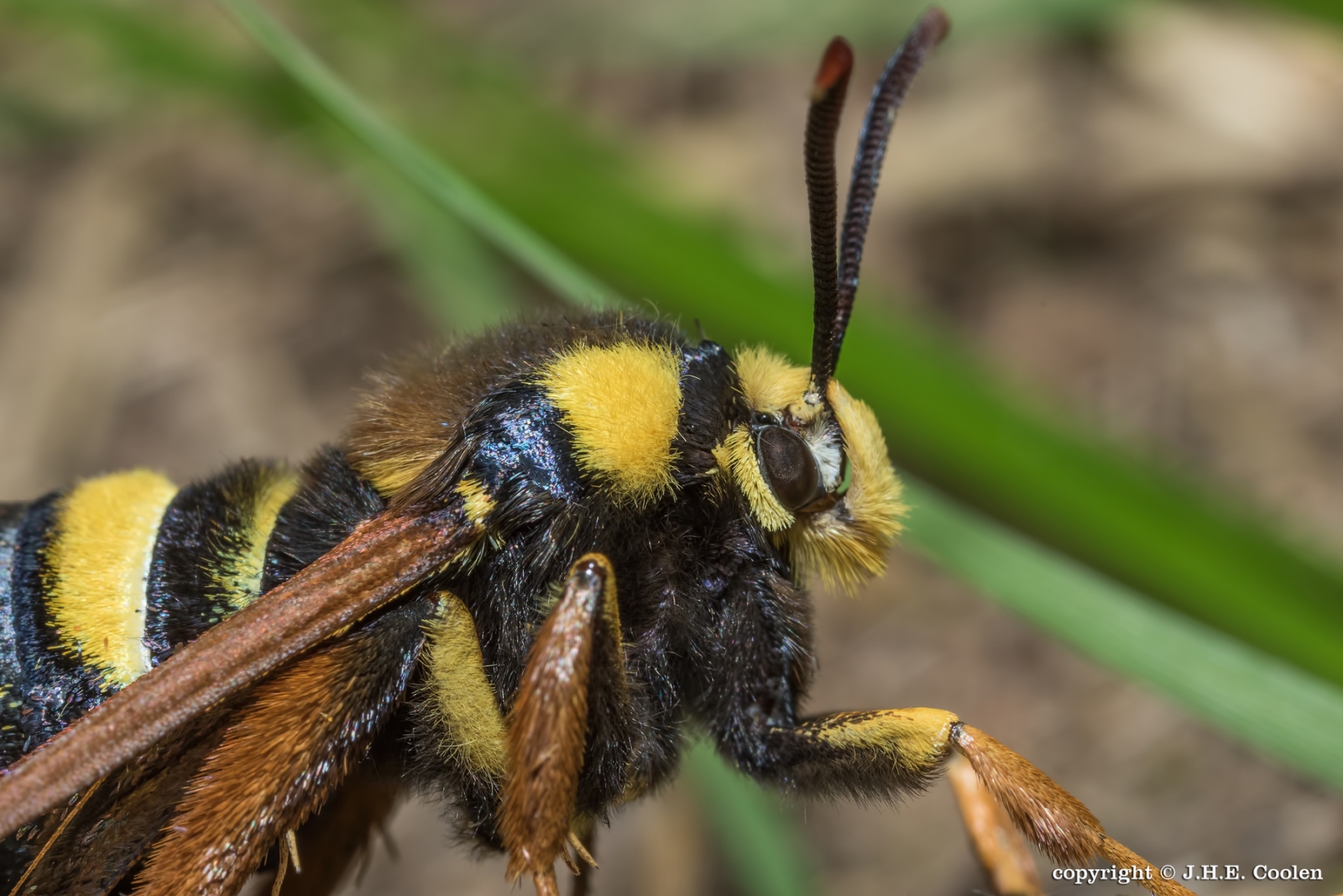 Mooie close-up van deze bijzondere vlinder met de mooie doorzichtige vleugels, die helaas ook regelmatig voor een wesp wordt aangezien en daarom doodgeslagen.