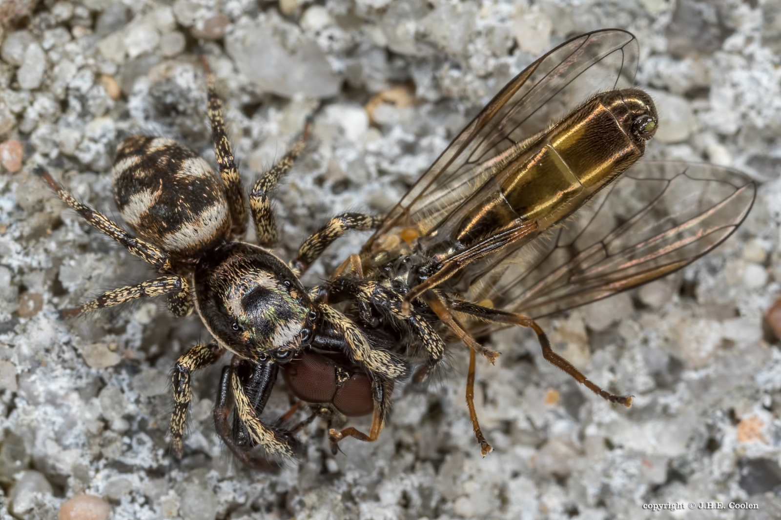 ben_ii Geplaatst op 02-05-2017 om 18:41 Hier valt niets meer te zweven Jan. Wat een felle rakkers zijn die springspinnetjes toch. Mooie opname van gemaakt. Vr.gr.