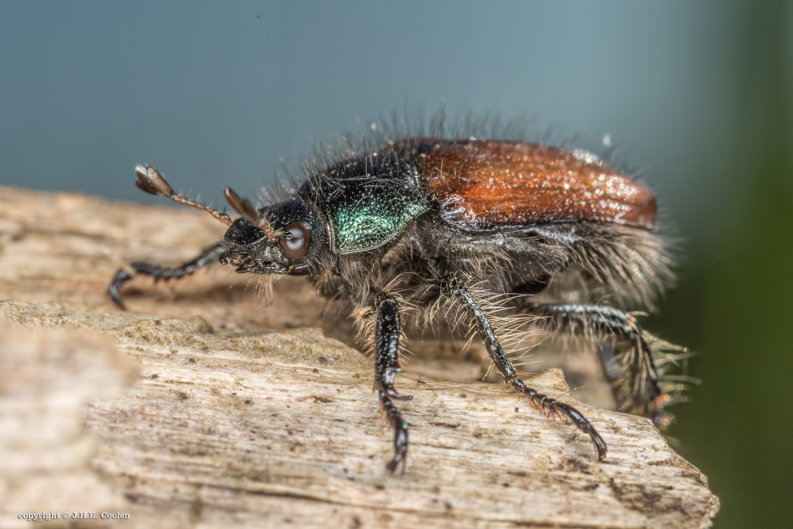 Een harig kevertje, dat vlijmscherp is afgebeeld. Gr Marjo