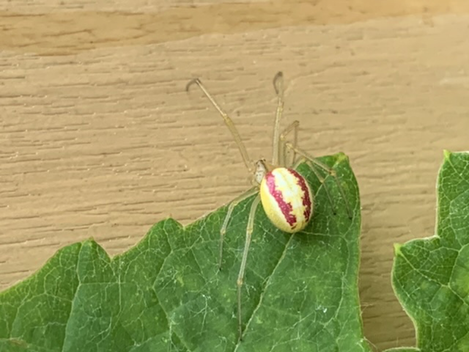 Vanmorgen tegengekomen in onze stadstuin. Zat verstopt onder een grote druivenblad. Nog nooit eerder gezien.