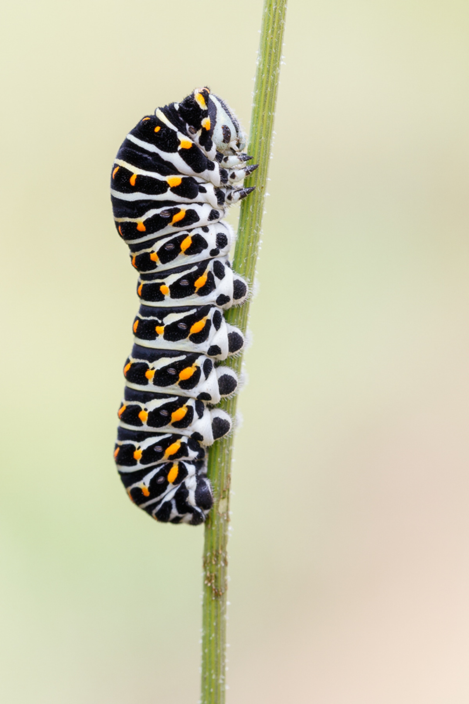 De rups is (vind ik ) bijna net zo mooi als de vlinder waarin het veranderd. Helemaal als ze zo mooi op de plaat worden gezet als hier.
