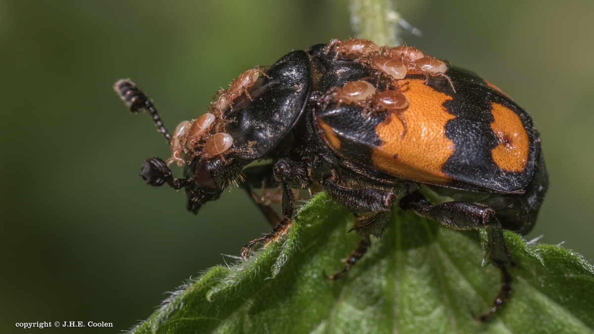 Op de foto zie je een krompootdoodgraver. Dit zijn kevers uit de aaskevers familie. De krompootdoodgraver (voorheen gewone doodgraver) is te herkennen aan het overwegend zwarte lichaam, met twee brede vlekkerige oranje dwarsbanden op de dekschilden en opvallende, roodoranje uiteinden van de tasters. Ze worden maximaal 2,5 centimeter groot en hebben een lichte beharing.