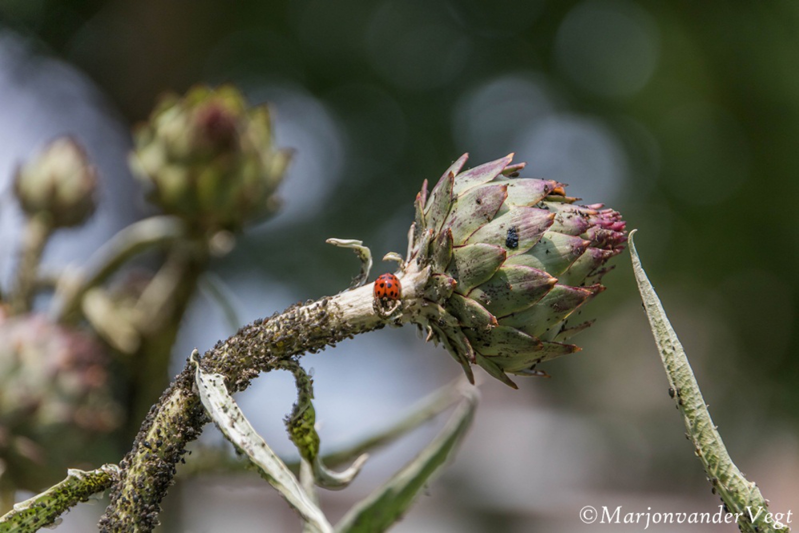 Deze is mooi! vooral dat blaadje rechts, heel stoer alsof het niks is die zware joekel tegenhouden...het lieveheersbeestje heeft echt een gigantisch feestmaal! een foto met een verhaal, gaaf!