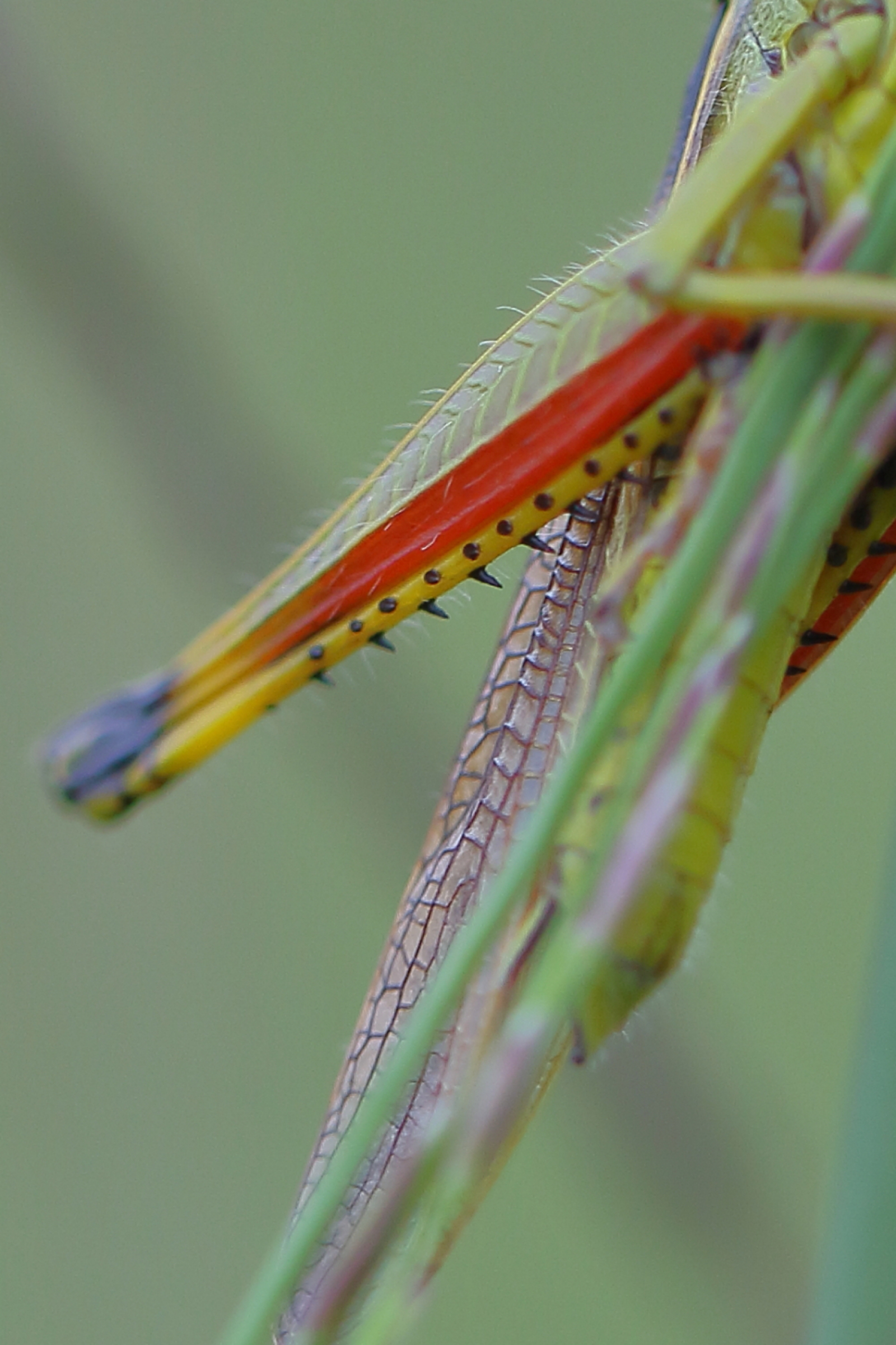Leuk weetje; de Belgen zijn trots op deze sprinkhaan want ze dragen de Belgische driekleur: rode achterdij, gele achterscheen met zwarte doorns.