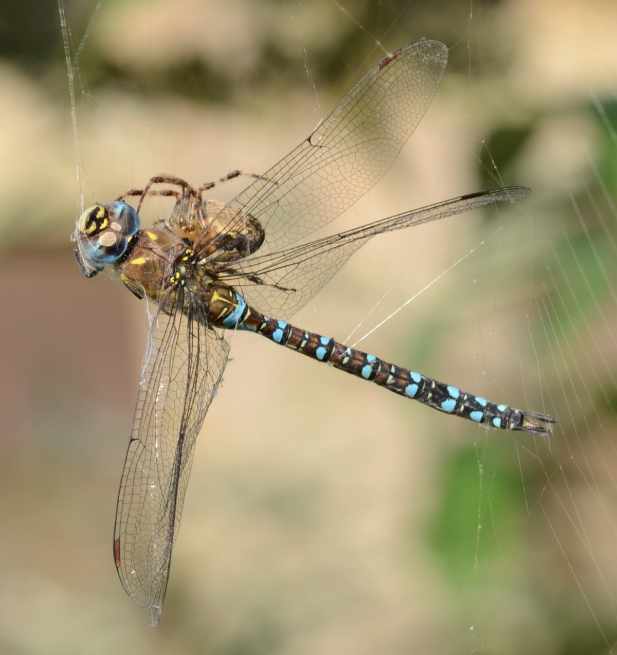 babohj Geplaatst op 11-09-2016 om 20:51 Deze grote libel is in leven vaak zoef voorbij en kan nu door jou prachtig gefotografeerd worden. Wel jammer dat hij tenprooi is gevallen aan dit venijnige spinnetje. Hgr. Helga