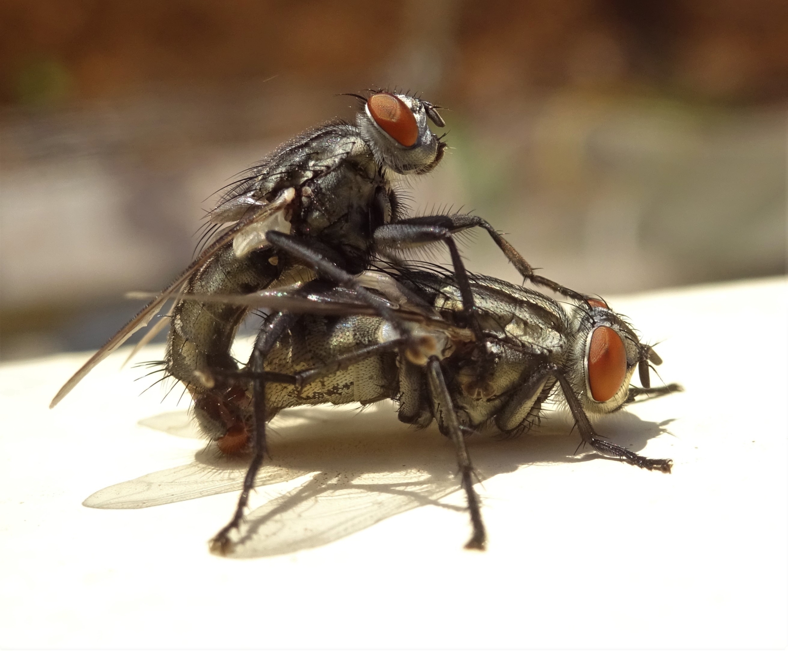 Parende vliegen op rand van mijn balkon in Griekenland (Karpathos) 19-11-2021 in het zonnetje