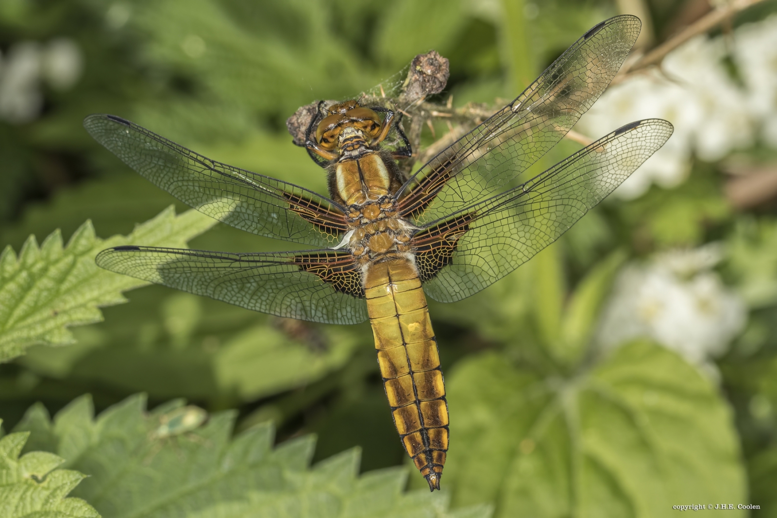De foto toont een jong mannetje. De achterlijf aanhangselen staan tegen elkaar aan, bij vrouwtjes staan ze uit elkaar.
