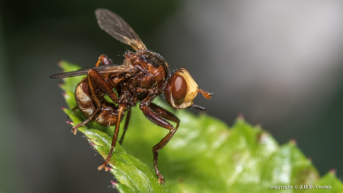 De roestbruine kromlijf is een blaaskopvlieg en komt algemeen voor. De soort parasiteert op hommels en zijn dan ook te vinden op plekken waar veel hommels zijn. Ze overvallen de hommel altijd in de vlucht. Het slachtoffer wordt vastgehouden met het legapparaat, waarna de lange dunne legboor in de buik wordt gestoken. Hierna worden dan de eitjes afgezet. Gr. Jan