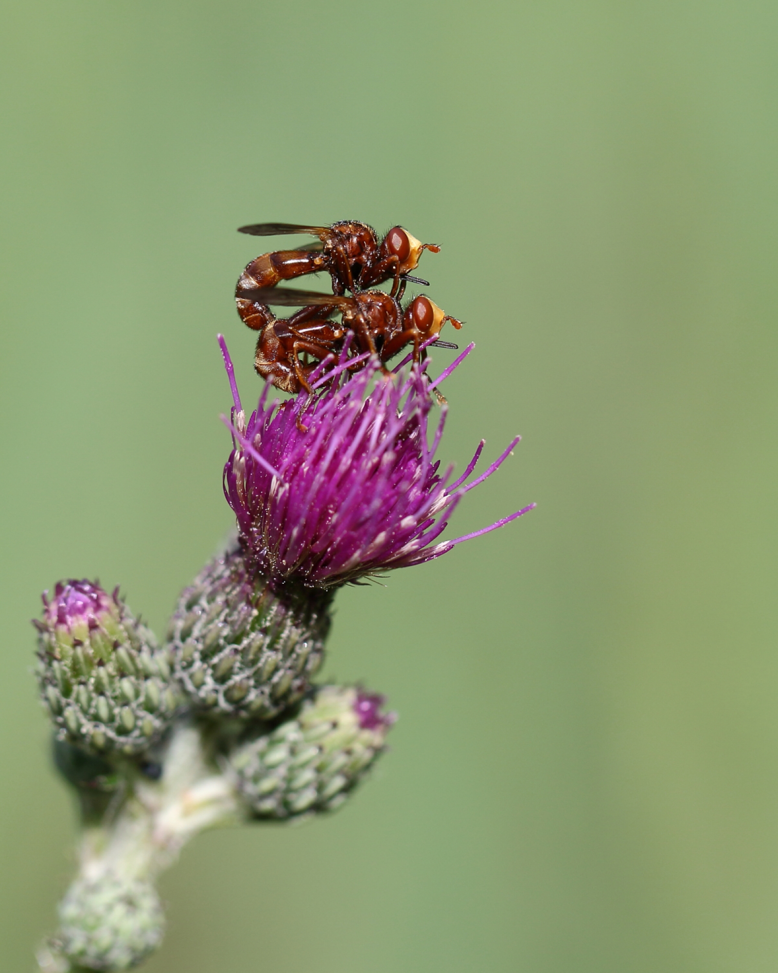 De roestbruine kromlijf behoort tot de familie van de blaaskopvliegen [Sicus ferrugineus]. Het is een parasitoïd van hommels ofwel het vrouwtje heeft een ‘klampje’ onder aan het achterlijf waarmee ze – als met een blikopener – het achterdeel van een hommel kan openen om daar een ei in te leggen. De roestbruine kromlijf is bij uitstek een hommelspecialist: de gastheren zijn onder andere aardhommel, akkerhommel, heidehommel, tuinhommel en steenhommel.