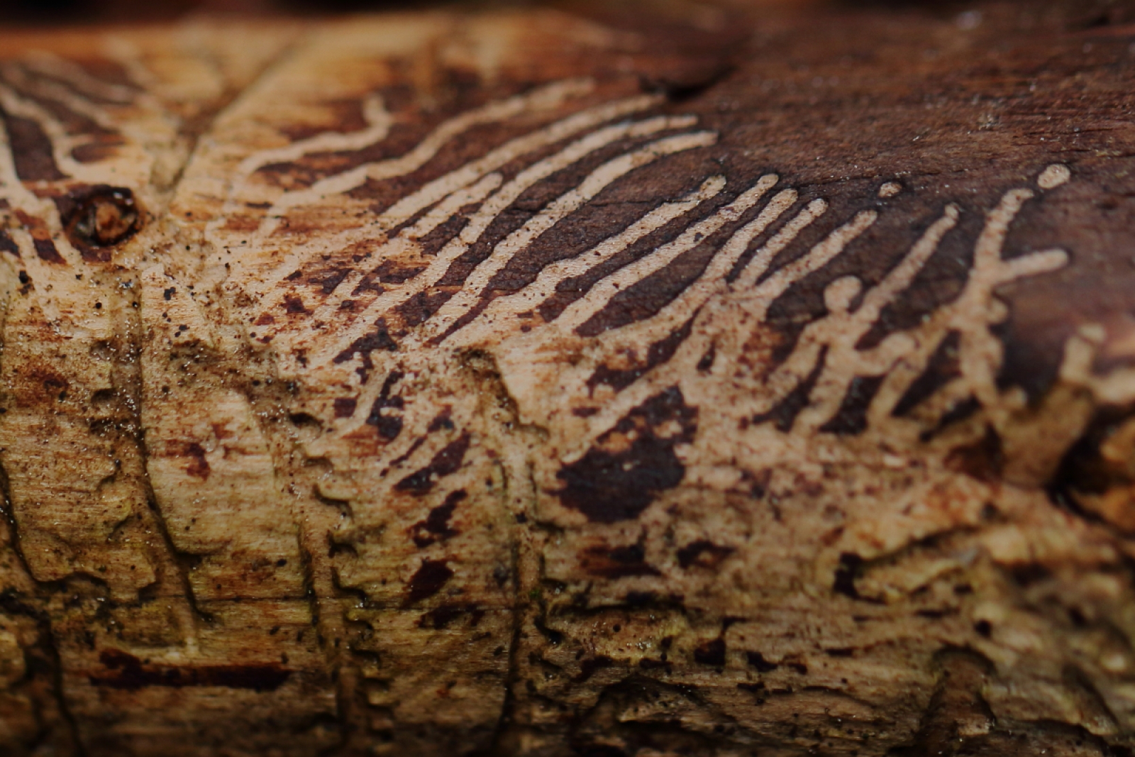 Vrijwel elke natuurliefhebber is wel bekend met LETTERZETTERS. Het zijn de ouderdieren en de larven van de schorskever [Ips typographus] die op sparren mooie vraatpatronen maken onder de bast. Er zijn in Nederland enkele honderden soorten kevers die vraatsporen achterlaten in hout. Een groot aantal soorten is gespecialiseerd op één of enkele verwante boomsoorten die we de waardbomen of waardplanten noemen (zoals bij vlinders). Verder is er specialisatie op diameter van de stam en de plek op de boom. Dit zijn niet alleen schorskevers maar ook andere soortgroepen als prachtkevers, boktorren en houtwespen.