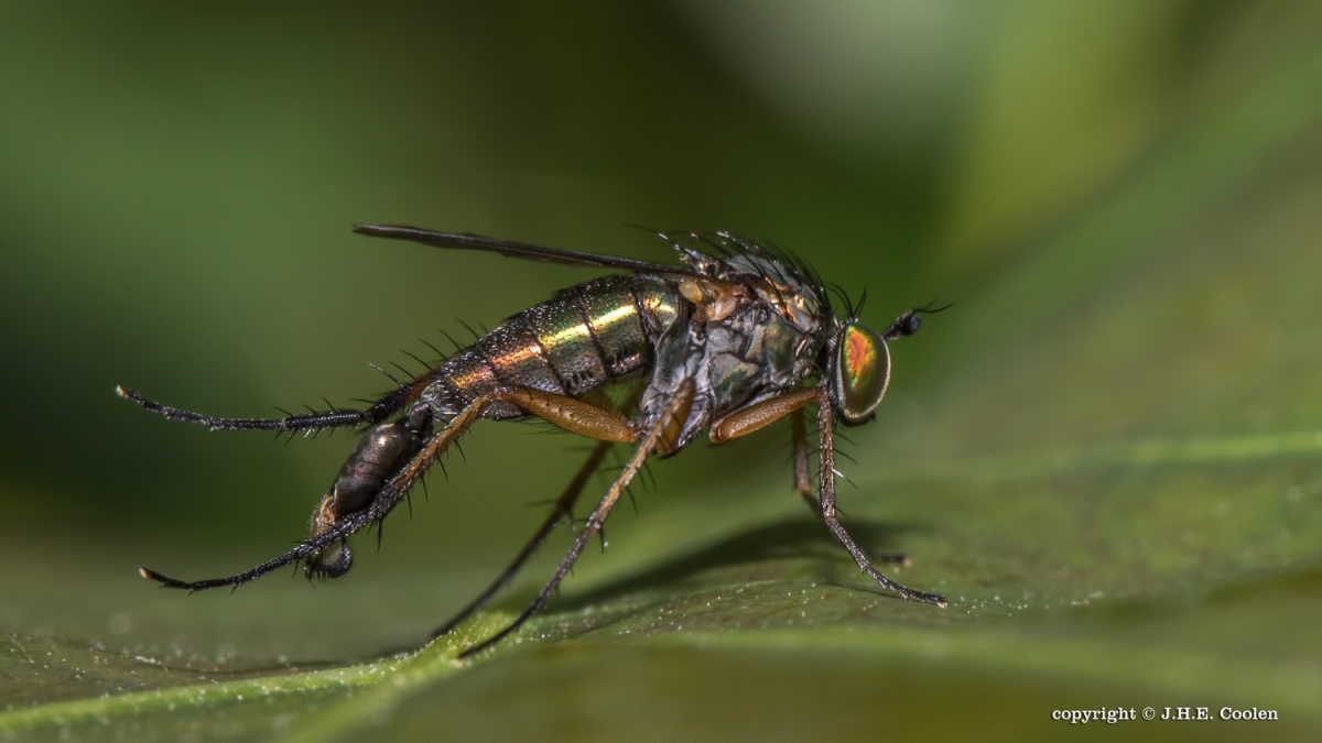 Deze slankpootvlieg deed zijn onderhoud, kwam een onderdeel tevoorschijn, dat mij niet eerder opgevallen was. Gr. Jan