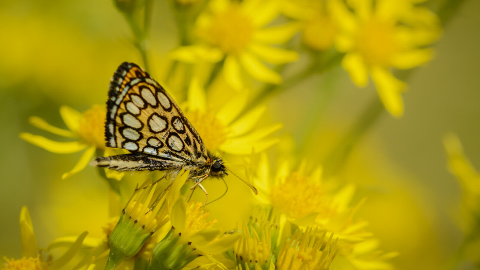 Het kwetsbare spiegel dikkopje waargenomen in de Groote Peel. De onderkant van de vleugels zijn mooier dan de saaie bruine bovenkant...