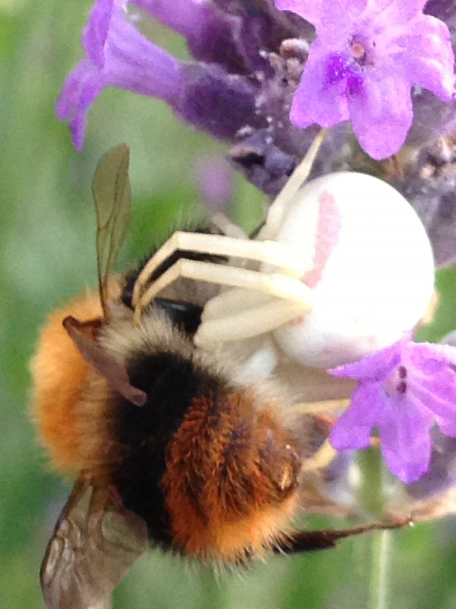 Witte spin eet een bij als snack. Genomen in landgraaf 2 juli