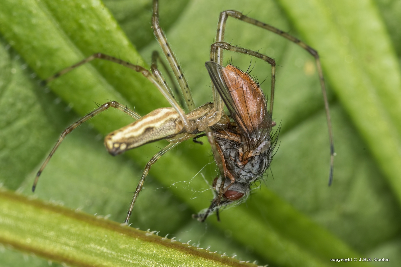 Prachtig in beeld gebracht deze Spin met z'n grote vangst.