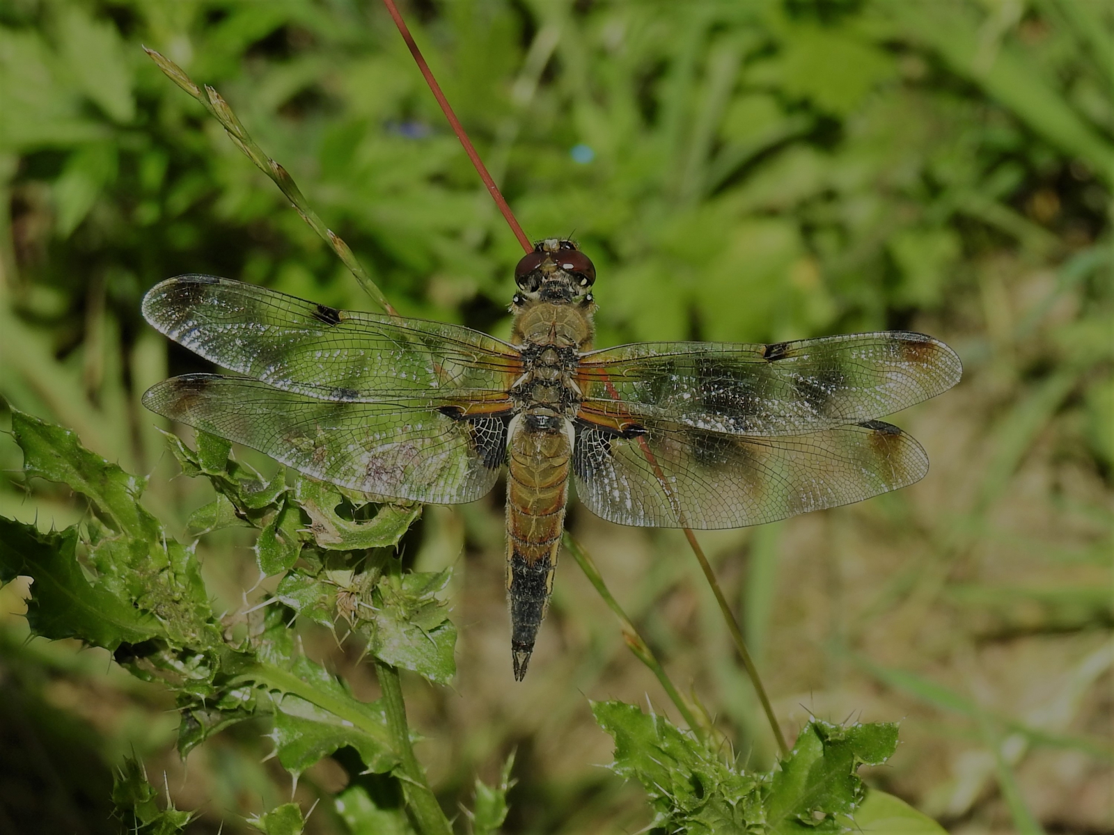 De viervlek is een middelgrote libel met een vrij breed achterlijf dat taps toeloopt en in een punt eindigt. Mannetjes en vrouwtjes zijn vergelijkbaar getekend, maar onderscheiden zich in de achterlijfaanhangsels. De achtervleugels hebben een donkere vlek in de basis; de aders in de donkere vlekken zijn opvallend geel. Halverwege de voorranden van de vleugels staat een donker vlekje, dat niet voorkomt bij andere libellensoorten.