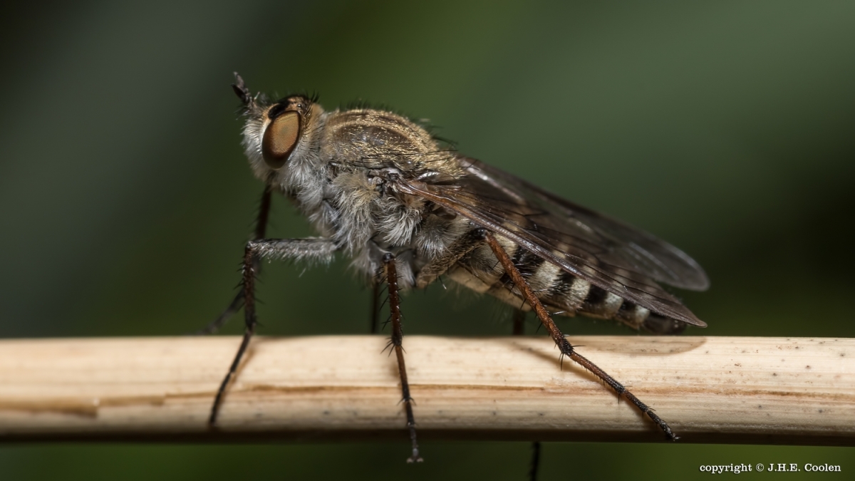 Een rover die vooral onder en in struiken jaagt, maar zich graag op een plekje in de zon opwarmt. Gr. Jan